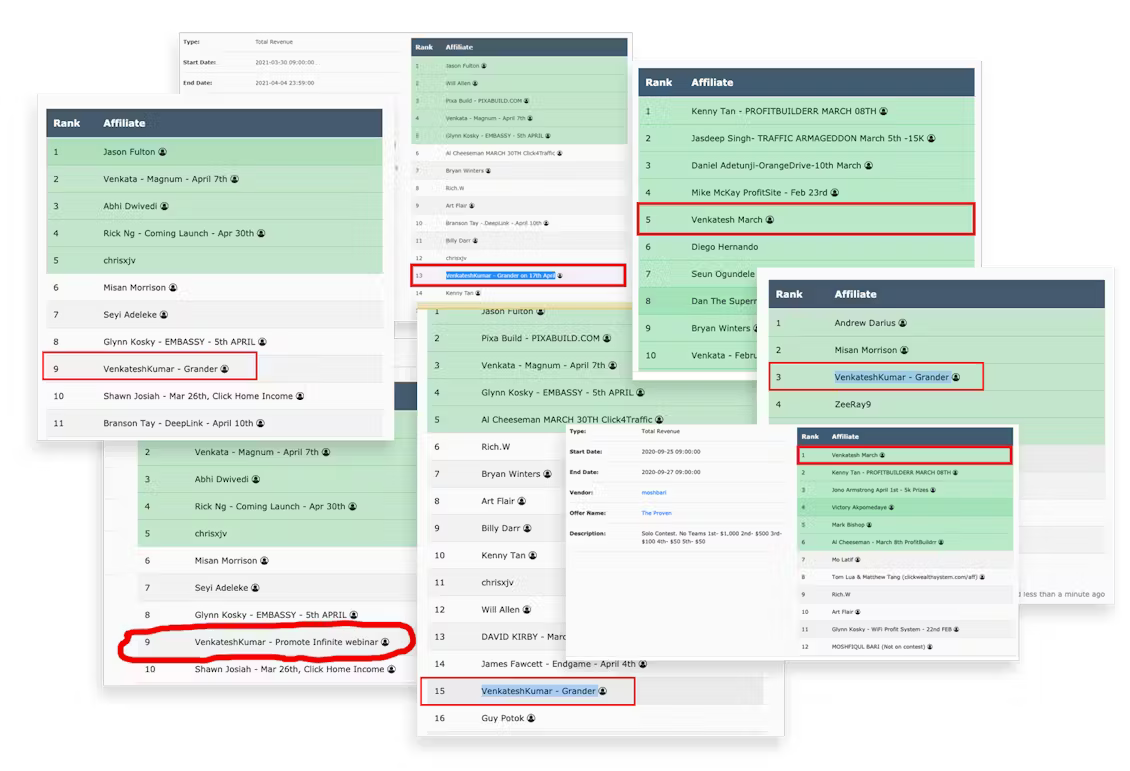 Contest Terms: $3k Opening Contest Contest Terms: Sales MUST be equal to or more than prize money. If you don’t make the revenue more than the prize money, the next lower prize will be paid. Each prize position qualifies only one person. No prize will be awarded to two people for the same position, even in cases of equal commission earned. Teams are allowed, but please let us know before the launch. We combine the affiliates from both platforms and award the prize money to the winner.