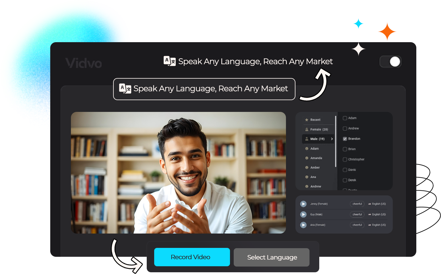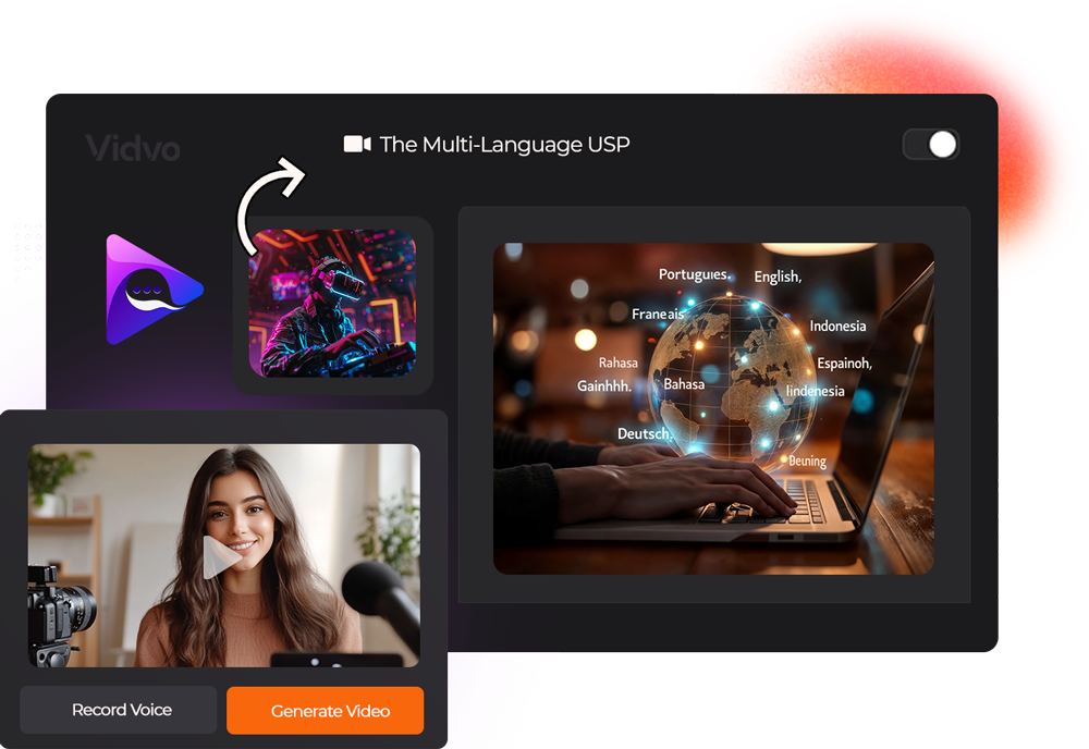 Here's where it gets truly game-changing: VidVo works in all major languages.